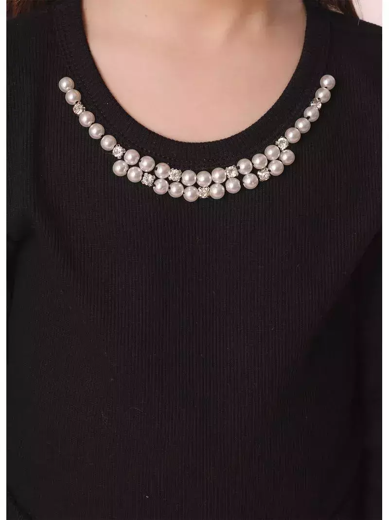 Blusa de ribana Pituchinhus, na cor rosa gelado. Gola redonda com aplicação frontal de bordados manuais de pérolas e cristais. Esta blusa é confortável e atemporal, faz diversas combinações com outras peças da coleção