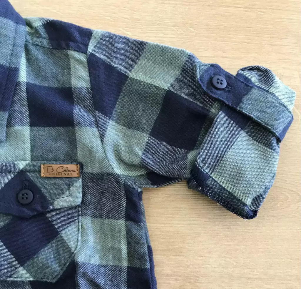 Transforme o guarda-roupa do seu pequeno com a Camisa Manga Longa Flanela Xadrez nas elegantes cores marinho e verde musgo. Esta peça não é apenas um item de vestuário, mas uma declaração de estilo!