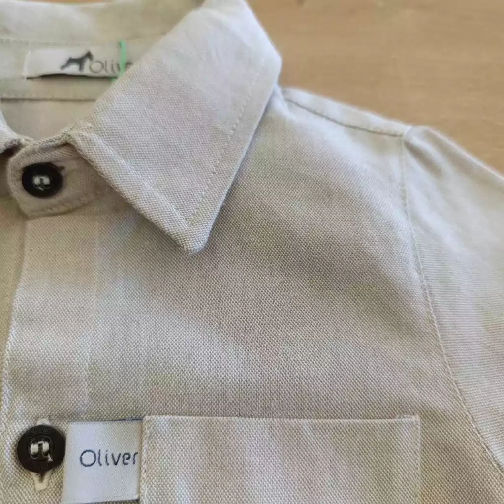 Camisa tricoline Oxford com bolso na cor bege – Oliver.
