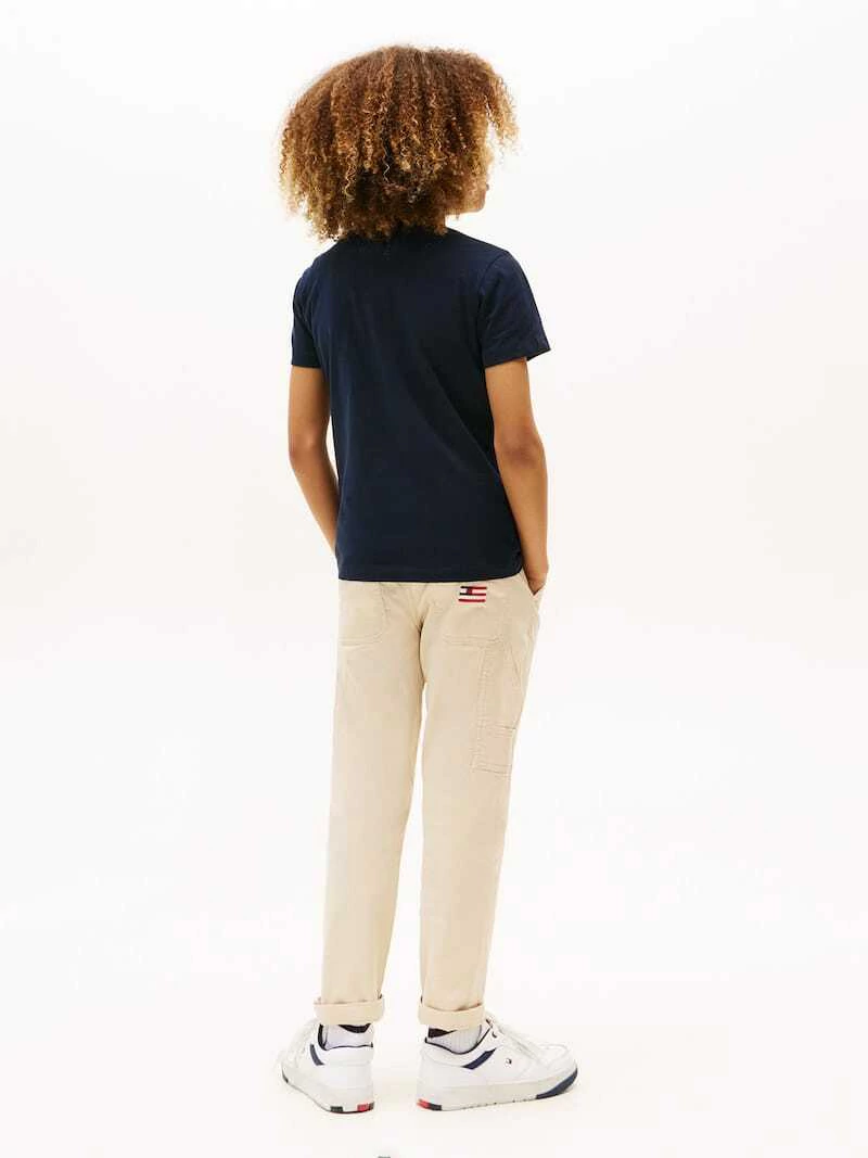 Camiseta manga curta na cor marinho, confeccionada em 100% algodão com elastano, lettering do lado esquerdo da peça na cor branco ''T''.