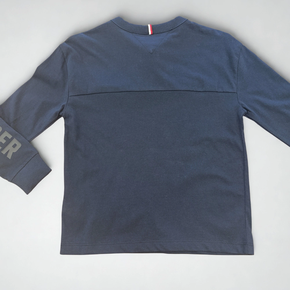 Camiseta manga longa confeccionada em 100% algodão, detalhe lettering ''HILFIGER'' na manga esquerda da peça . Com punhos na manga, bordado bandeira da marca.