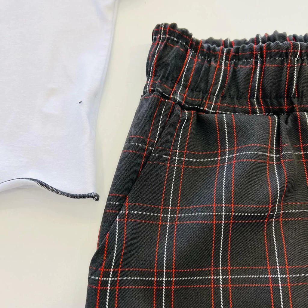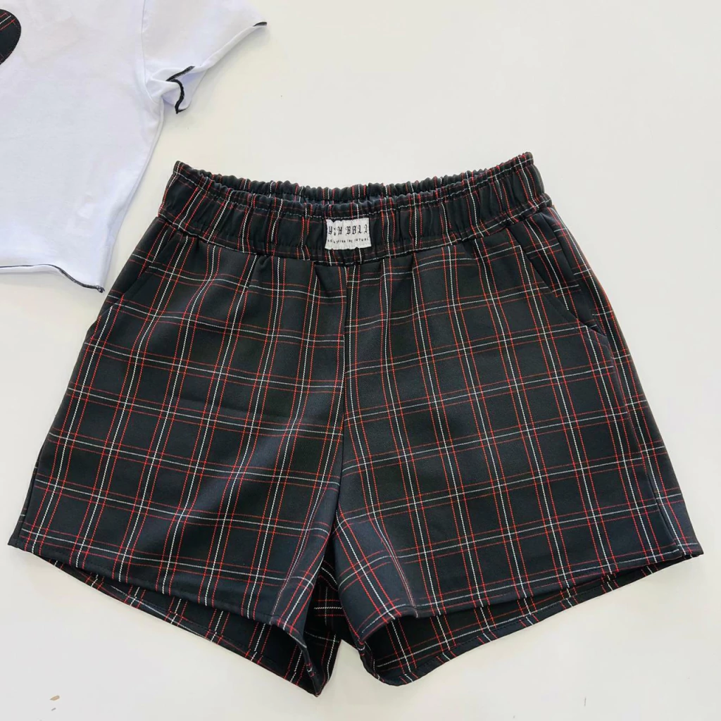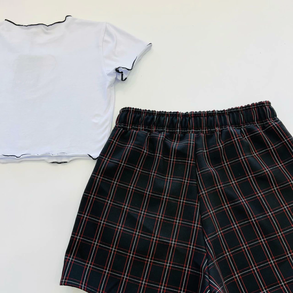 O Conjunto Cropped e Shorts Xadrez é a escolha ideal para quem busca um visual moderno e confortável. Composto por um short de tecido plano na cor preto, decorado com linhas off e vermelho que formam um encantador design xadrez, este conjunto se destaca pela sua originalidade e estilo.
