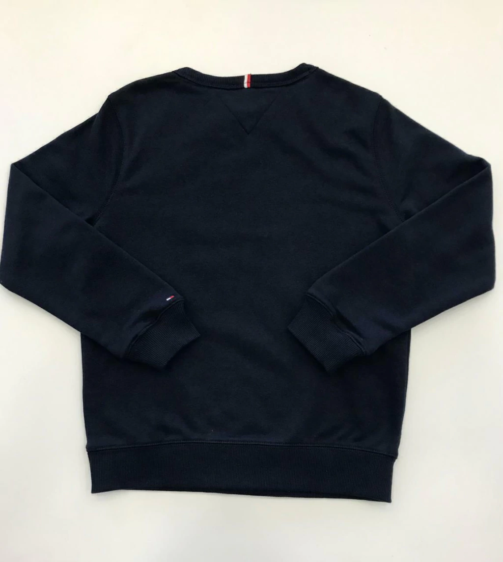 Moletom Tommy Hilfiger na cor marinho com gola careca e punhos nas mangas, ideal para quem busca conforto e estilo. Apresenta estampa TOMMY HILFIGER e a bandeira icônica da marca na manga e colarinho, evidenciando sua autenticidade.
