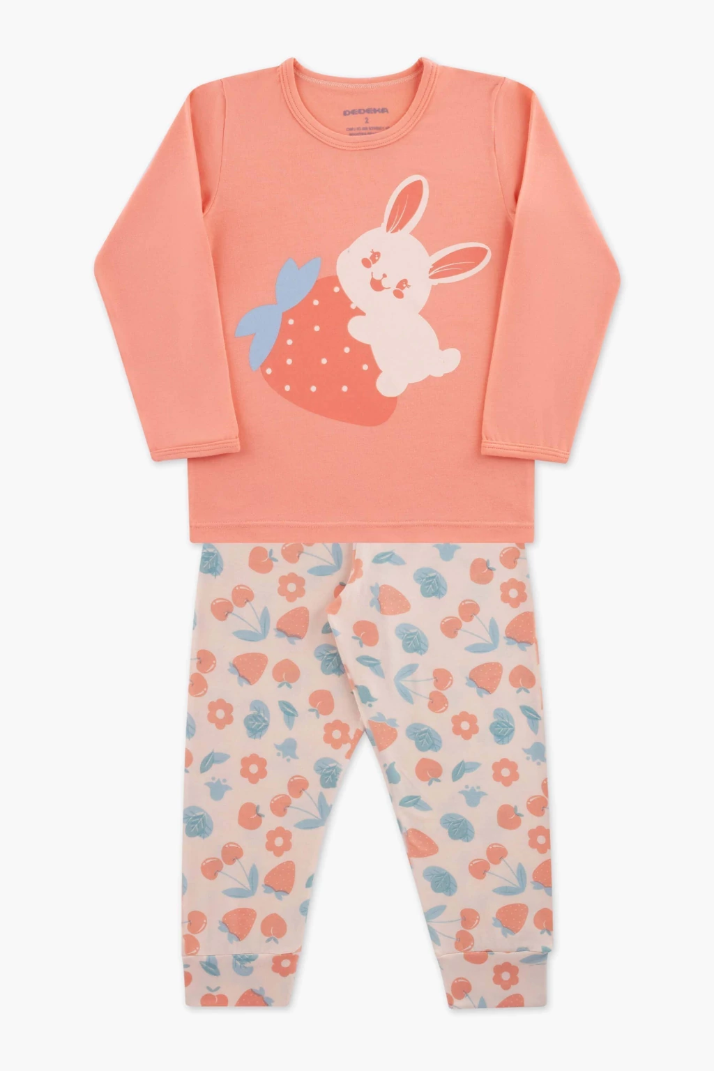 Conjunto tipo pijama longo infantil para menina. Feito em modal, tecido tecnológico, com toque gostoso e delicado e um caimento mais leve e suave do que os tecidos convencionais. Exclusivo da Dedeka.